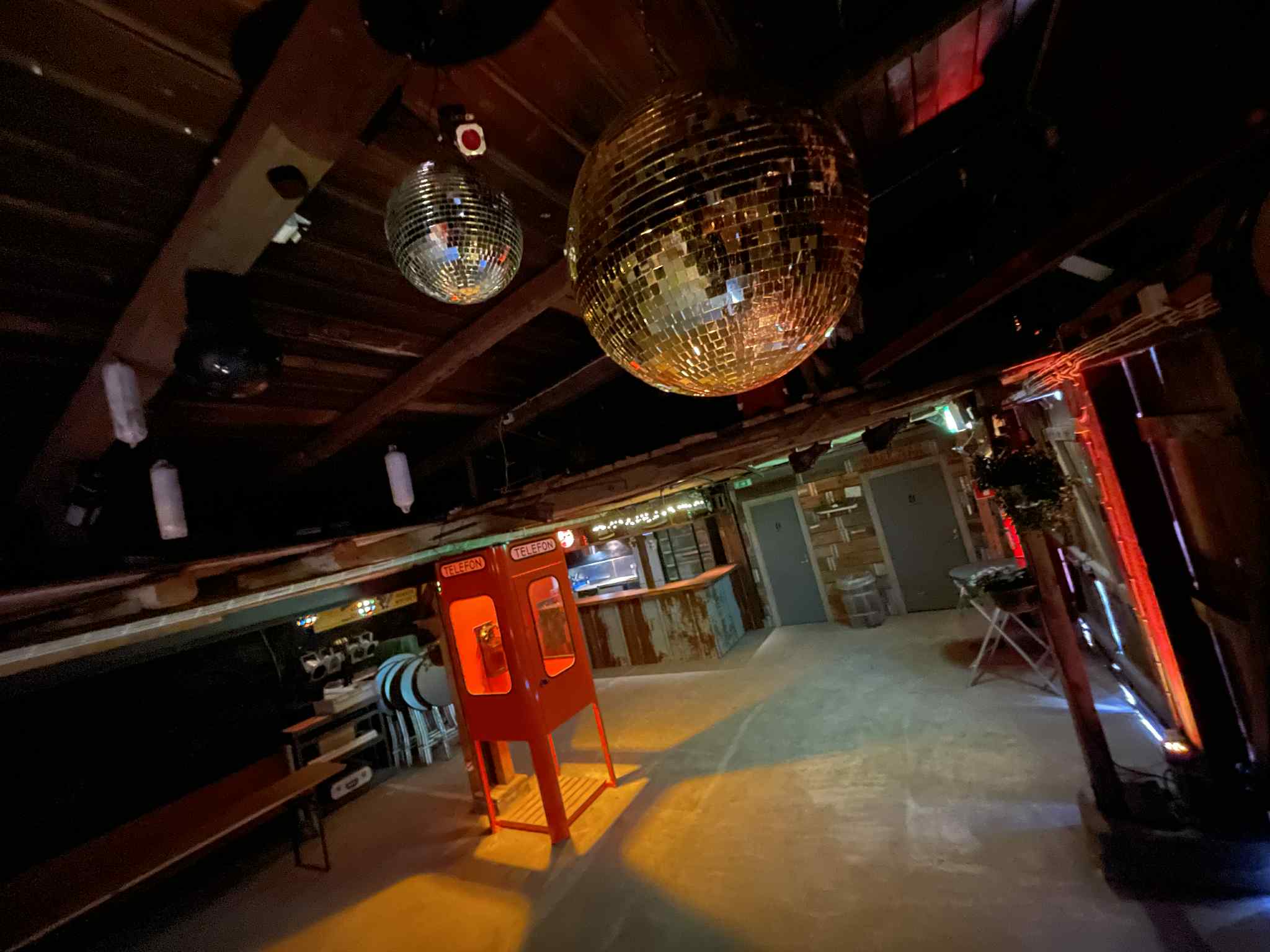 Wärkstads byggnaden: ca 200 kvm är inredd med discobås, dansgolv.